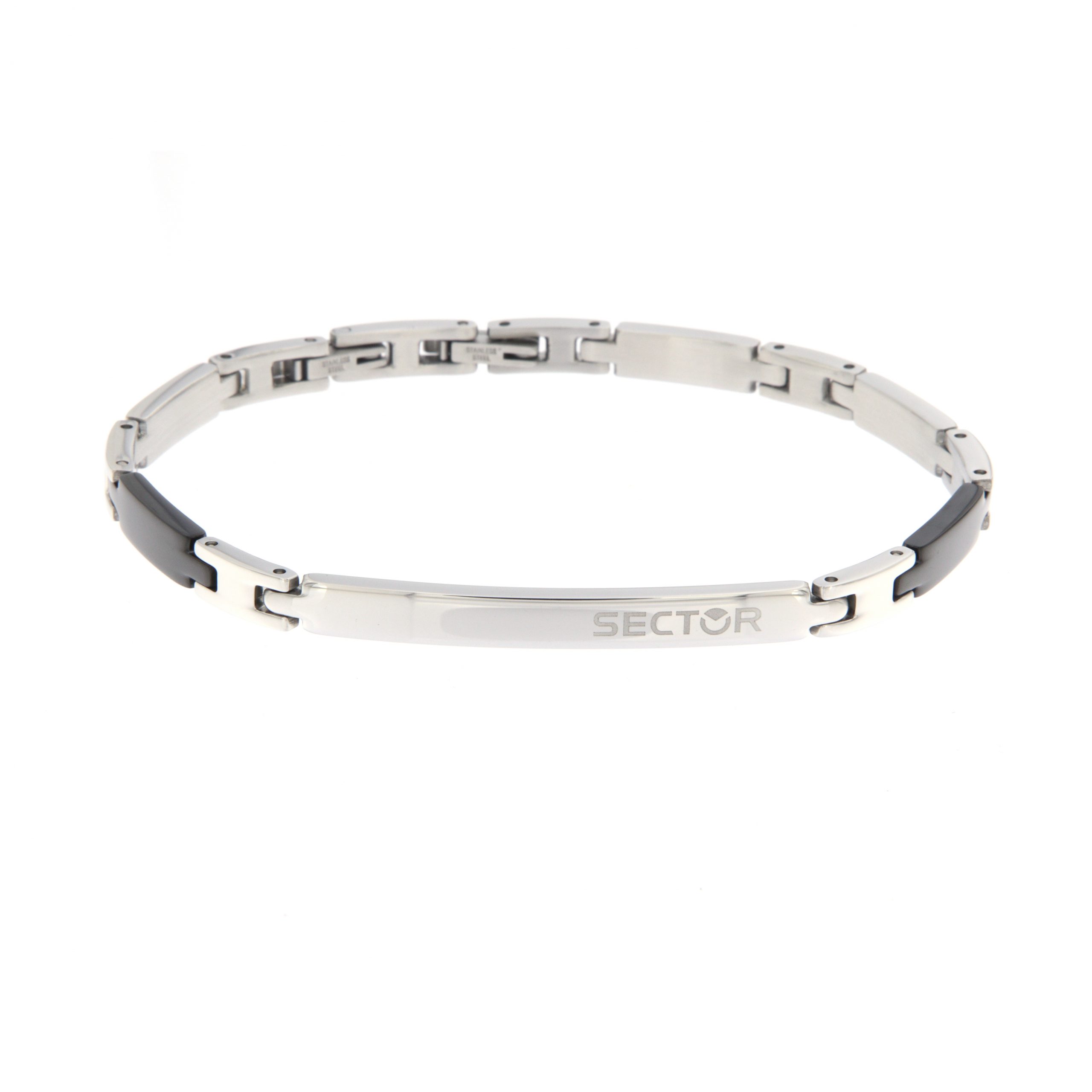 Bracciale in acciaio 316L ipoallergenico con finitura lucida e dettagli in PVD nero.