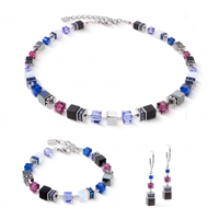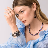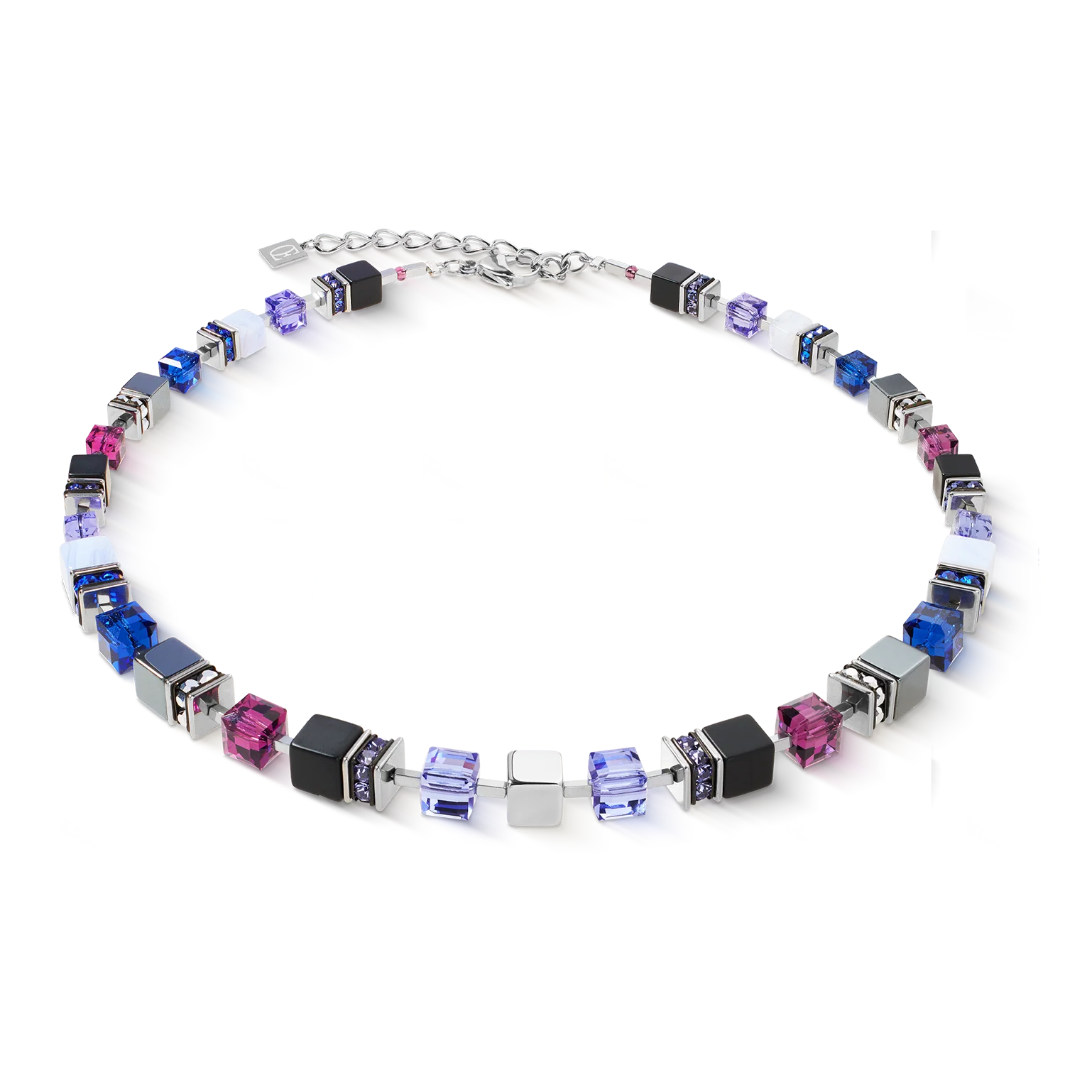 Una dichiarazione forte nel colore e nella forma: La GeoCUBE® Precious Statement Necklace Blue Moon combina grandi elementi cubici da 8 mm in onice profondo, rosa brillante, viola e blu ricco con ematite e calcedonio metallico lucido. I cristalli sfaccettati danno risalto agli scintillii, mentre i freddi elementi in acciaio inossidabile conferiscono al design una chiarezza moderna. Un gioiello espressivo per look sicuri.