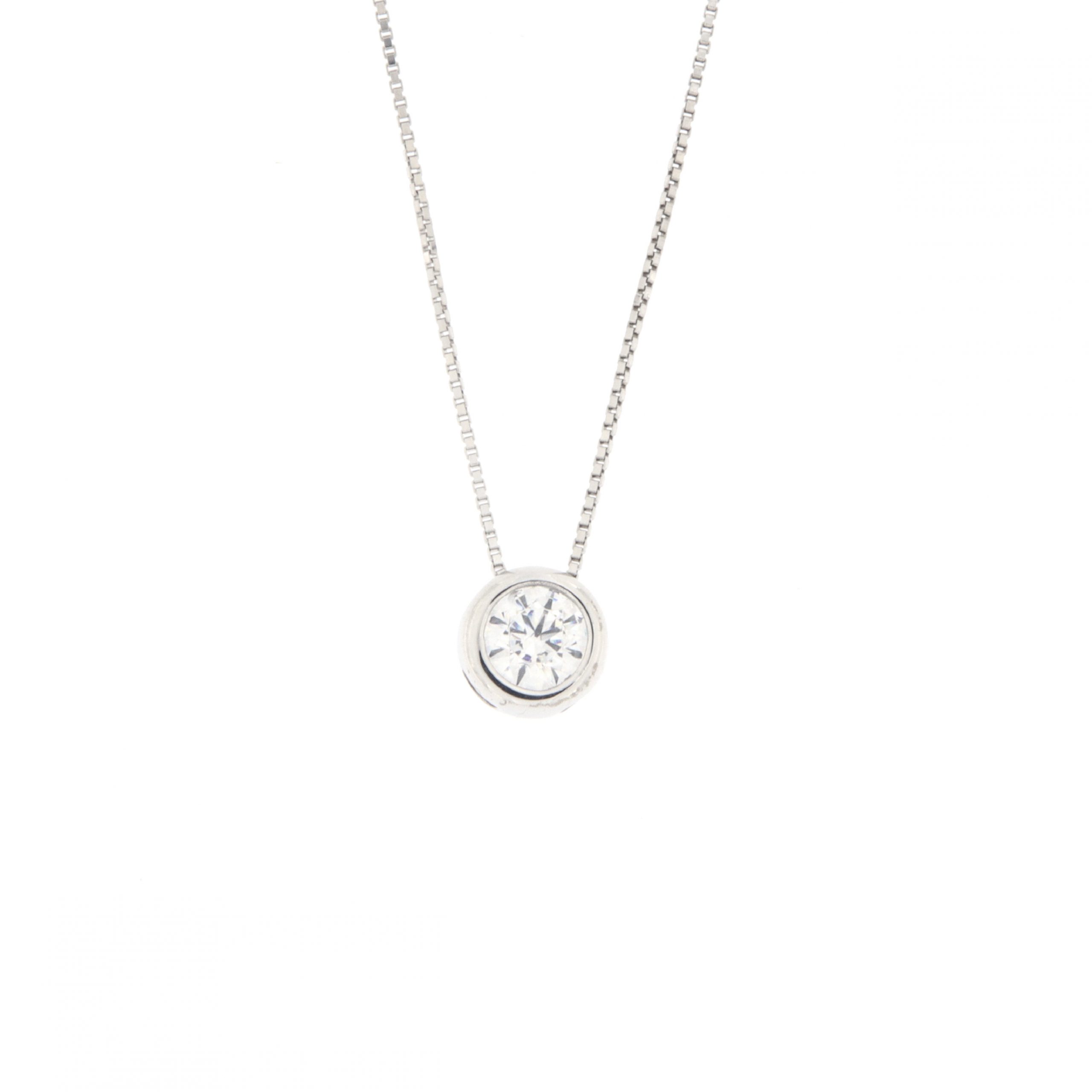 Catenina con pendente in oro bianco 750/1000 con zirconia cubica taglio a brillante.